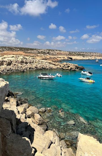 From Protaras, head to the nearest bus stop, which is located on the Protaras Strip. Take the bus towards Ayia Napa. The bus ride will take about 15-20 minutes. Get off at the Ayia Napa bus station. From there, exit the station and head towards the coast. Follow the signs towards the Blue Lagoon, which is located near X38H+H6, Ayia Napa. It's about a 20-minute walk from the bus station to reach the Blue Lagoon.