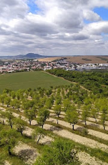 If you're nearby and prefer to walk, Mandloňové sady is accessible from various trails in the area. From the center of Hustopeče, you can walk towards Šafaříkova street, which will lead you directly to the orchards. The walk is approximately 1 km and takes about 15-20 minutes, offering a scenic route through the countryside.