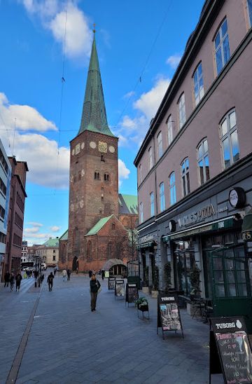 Situated on Store Torv in the very heart of Aarhus C, Aarhus Cathedral is a focal point of the old town. From most central hotels or the train station, it’s an easy stroll—expect about 10 to 15 minutes on foot through pedestrianized shopping streets lined with cafés, boutiques, and the buzz of city life. As you approach the domed square, the cathedral's imposing spire becomes unmistakable, guiding you to its historic entrance.