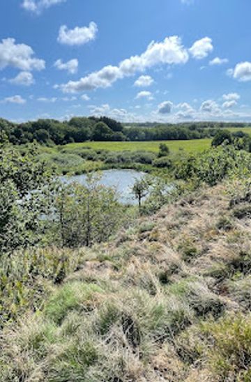 Quiet Bornholm wetland in a rocky rift valley, where Iron Age ruins, an old railway trail and protected bog habitats meet in a serene pocket of wild nature.