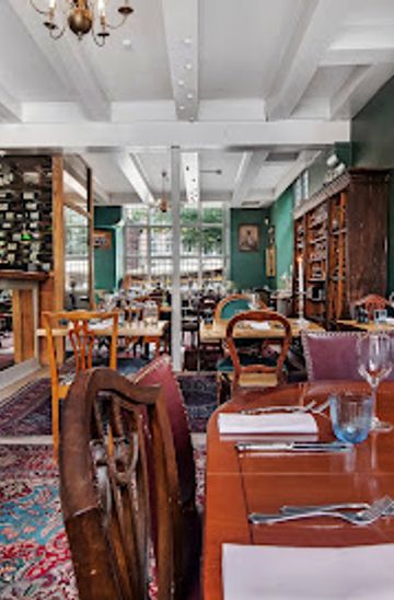 Restaurant Maven & Vinbar occupies part of the decommissioned Nikolaj Church on Nikolaj Plads, one of central Copenhagen’s most atmospheric squares. The restaurant’s name nods to the building’s long history as a place of gathering and community, now reimagined as a sanctuary for good food and wine rather than worship. Step inside and the historic brick walls, tall windows and timber details immediately set the tone: this is classic Copenhagen heritage meeting contemporary Nordic dining.The kitchen leans into local traditions, with smørrebrød, seafood and produce-driven plates that highlight clean flavors and careful technique. Menus typically follow the seasons, drawing on Nordic ingredients like plaice, salmon, root vegetables and berries, often prepared with light sauces, fresh herbs and precise plating. Portions are generous enough for a leisurely lunch yet refined enough to feel special, making Maven as suited to a weekday business meal as to an evening celebration.Atmosphere of warmth, candles and cobblestones