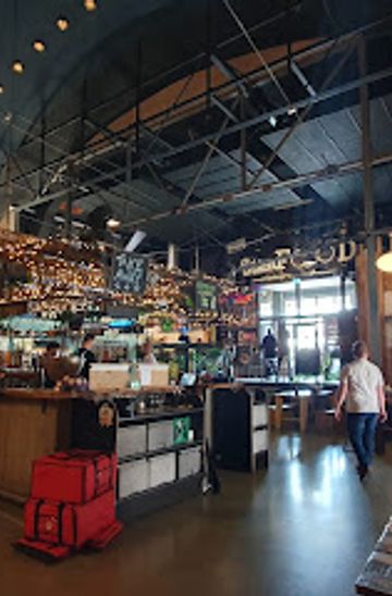 Beyond the food, drink is a key part of the experience. A central bar anchors the main hall, pouring a range of draft and bottled craft beers alongside cocktails, wine and soft drinks. Smaller counters and a café-style area offer coffee and lighter refreshments throughout the day. On warm days, the covered courtyard becomes the natural gathering point, with long tables, heat lamps and an easy-going clatter of trays and conversation. Because the venue doubles as a cultural hub, it periodically hosts live music, themed food events and other small-scale happenings. The building’s flexible layout allows the atmosphere to shift from laid-back lunch spot to more energetic evening venue without losing its informal character. You can linger over a beer after eating, use it as a pre-show stop before other plans, or simply drop in for a quick snack.Spaces for families, friends and quieter moments