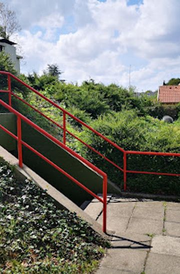 From Odense's main shopping precincts or railway station, it's a leisurely 20–25-minute walk through the city’s leafy civic neighborhoods. The bunker lies beneath a modest municipal site surrounded by residential buildings. Those in central Odense can orient towards the university quarter before following parkland paths leading to Kragsbjergvej. The entrance is distinctly marked but blends into the surroundings, so watch for subtle signage.