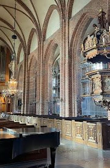Step inside and the space suddenly lifts. Slender brick pillars carry ribbed vaults high overhead, and soft daylight filters through tall windows to pool on the worn stone floor. The atmosphere is one of calm continuity: this is a working parish church, but also a gallery of medieval craftsmanship. Among the most striking treasures is a richly carved 15th-century altarpiece, a painted triptych that once framed worship in Catholic times and still draws the eye to the eastern end of the nave. Look around the choir and side aisles and you’ll find finely worked wooden furnishings, including a later pulpit added after the Reformation, when sermons became central to Lutheran worship. Traces of older practices linger in the wall niches, once used as seating for elderly parishioners when most of the congregation stood. High on the gallery, the pipe organ continues a tradition that began here in the late 1500s, when one of the first organs was installed to accompany congregational song.From Catholic Denmark to Lutheran Sweden