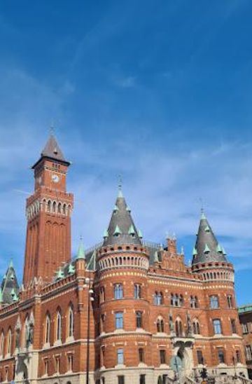 A monumental red-brick city hall and coastal gateway, where neo-Gothic towers, National Romantic detail and civic stories overlook the Øresund in central Helsingborg.