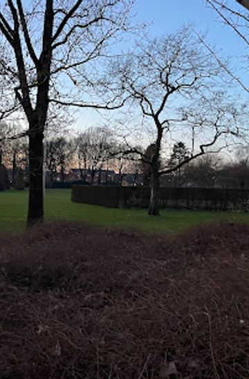 A serene ornamental memorial park in eastern Herning, where hedge-framed garden rooms, quiet lawns and oak groves honour Second World War history.