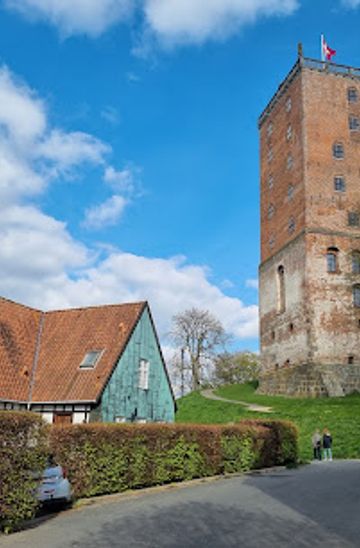 Climbing Christian IV’s great tower is one of the high points of a visit. The ascent takes you up through layers of brick and timber before opening out onto sweeping views across Kolding, its lake and the surrounding green hills. On clear days you can see how the castle commands both the town and the wider landscape, making its defensive origins easy to understand. The wind on the tower platform and the broad horizon make a striking contrast to the intimate exhibition rooms below. Back at ground level, the courtyard and surrounding castle bank offer quieter corners to linger. From the grassy slopes you can look up at the jagged rooflines and patched‑together walls and appreciate just how much of the ruin fabric has been retained. Inside, a restaurant in the former cellars and a shop integrated into the museum make it easy to extend your stay, whether over lunch under vaulted ceilings or with a book about Danish history in hand.Planning your time at Koldinghus