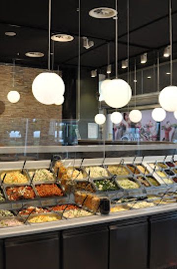 D’let – Det Grønne Køkken in Kolding Storcenter is a relaxed, family-friendly buffet restaurant built around a simple concept: choose from a huge spread of Thai dishes, hot comfort food and fresh salads, weigh your plate or takeaway box, then pay by the gram. The long counters are lined with colorful greens, crispy spring rolls, noodles, rice, grilled meats and vegetarian options, making it an easy, flexible stop for mixed groups, quick mall lunches or casual dinners during a day of shopping.