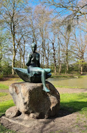 Located at Stadion Allé, Østerspigen stands near community sports facilities and open green spaces, a setting that blends everyday life with moments of reflection. The surroundings are informal: lawns, trees, and recreational areas where locals pass by on their way to matches, walks, or picnics. This casual backdrop makes the statue feel woven into the town’s daily rhythms rather than set apart. Benches and small seating spots nearby offer a place to pause, watch activity around the stadium, and consider the figure in changing light. In soft evening sun, the bronze surface picks up warm tones, while on overcast days its patina feels more subdued and introspective. The modest scale of the work invites you to move closer, noticing details like the curve of the shell and the calm focus in the girl’s expression.Reading the details in metal and posture