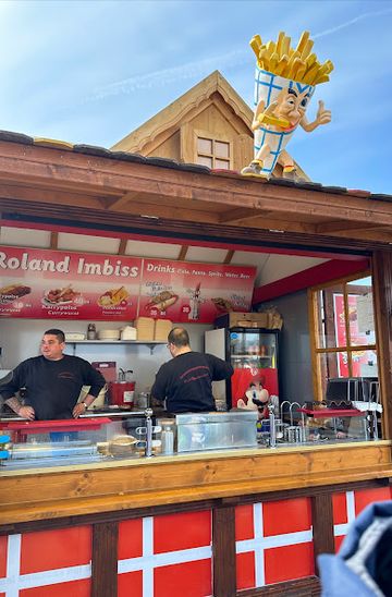 The menu focuses on uncomplicated, filling dishes that suit sandy hands and windy days. Expect grilled sausages, hot dogs, burgers, schnitzel-style choices and generous portions of fries, often served in cardboard trays easy to carry back to the beach. On cooler days, a hot meal here becomes an essential warm-up between beach walks or kite flying.Portions tend to be substantial enough to share, making Roland Imbiss a practical option for families or groups wanting a quick, budget-conscious meal instead of a sit-down restaurant. The emphasis is firmly on speed and satisfaction rather than culinary experimentation, which fits perfectly with the easygoing, spontaneous nature of a day at Lakolk.Part of Lakolk’s Seaside Holiday Scene