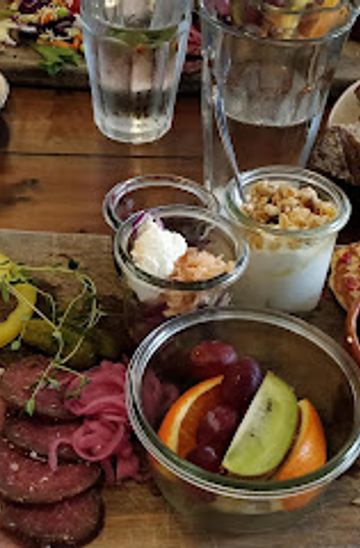 Behind Café Korn stands a family with farming roots, and that heritage shows in the focus on hearty plates, seasonal produce and an unpretentious approach to food. The menu runs from morning to evening, shifting its character without losing that comforting, home‑cooked tone. Weekends are known for an abundant brunch buffet, with classic eggs, breads, cheeses and charcuterie layered alongside fresh fruit, yoghurt and small warm dishes.Later in the day, café staples take over: burgers in sturdy buns, crisp salads, sandwiches stacked with fillings, smørrebrød, fries and small sides that lend themselves to sharing. Portions tend to be generous rather than fussy, designed to leave you satisfied rather than merely tasting. Many dishes can be ordered to stay or as takeaway, making the café a practical option for spontaneous meals.Vegetarian twists and flexible eating