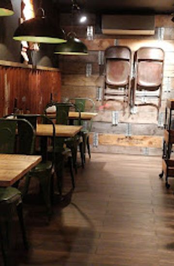 Inside, the restaurant leans into a pared-back, slightly rustic-modern look: wooden or laminate tables, simple chairs and benches, and industrial-style touches such as exposed finishes or metal details. Lighting is warm rather than harsh, making it comfortable for lingering over a late lunch or early evening meal.The open view towards the kitchen adds a bit of energy, with the sound of sizzling patties and the clatter of baskets from the fryer. Seating is informal, with small tables that can be pushed together for families or groups, and a few spots better suited to solo diners watching the room.Takeaway focus with dine-in convenience
