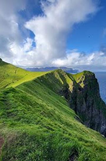 Hike to Kallur Lighthouse on Kalsoy Island for breathtaking views of dramatic cliffs, rugged coastlines, and the vast Atlantic Ocean.