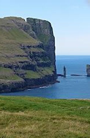 Risin og Kellingin viewpoint offers visitors stunning panoramic views of the Faroe Islands, showcasing dramatic cliffs, lush landscapes, and the Atlantic Ocean. Perfect for photography and nature lovers.