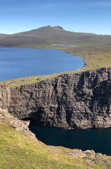 If you prefer cycling, rent a bike in Kvívík and start at Kvívík Church. Cycle southwest along Road 10 towards Sandavágur. The ride is about 5 km and should take roughly 20-30 minutes, depending on your pace. Once you arrive in Sandavágur, look for the signs directing you to Trælanípa. Follow the road and then take the trail leading up to Trælanípa. Be cautious of the terrain as it can be steep in some areas.