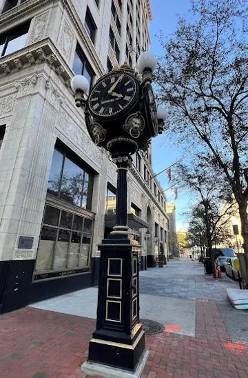 If you are in Downtown Jacksonville, the Greenleaf/Jacobs Clock is located at 200 N Laura St, just a short walk away. Start by heading north on Laura Street from any nearby landmark, such as the Jacksonville Public Library or the Jacksonville Landing. Continue walking for about 5-10 minutes, and you will see the clock on your right. It is prominently displayed and hard to miss.