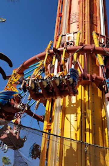 Dare to face Falcon's Fury, the tallest freestanding drop tower in North America, located in Busch Gardens Tampa Bay. This adrenaline-pumping ride elevates you to a staggering 335 feet before pivoting you 90 degrees, leaving you face-down for a heart-stopping freefall. Experience the sensation of diving like a falcon as you plummet towards the earth at 60 mph. With breathtaking panoramic views of Tampa before the plunge, Falcon's Fury is not just a ride; it's an unforgettable test of courage and a unique skydiving-like experience that dominates the Tampa skyline. Nestled within the vibrant Pantopia area of the park, it's a must-try for thrill-seekers visiting Florida.