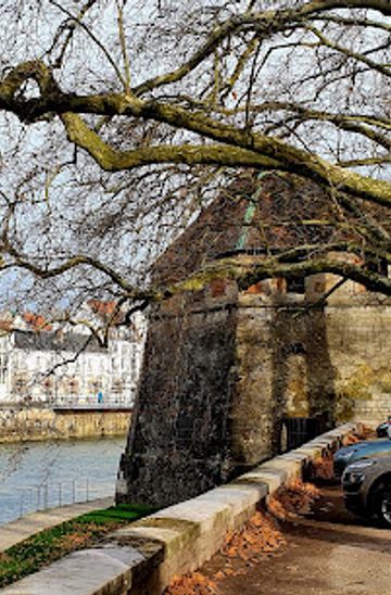 From the center of Besançon (e.g., Place de la Révolution), walk along the Quai Vauban towards the Chamars area. The Cordeliers Tower is situated along the river, approximately a 10-15 minute walk. No costs involved.