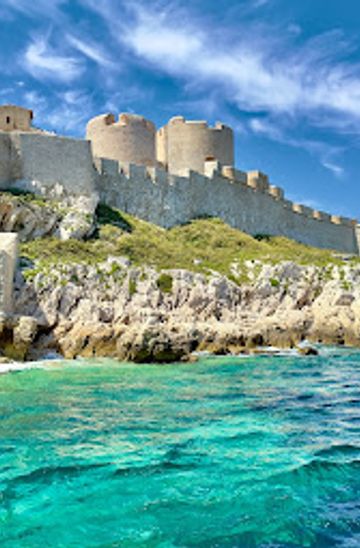 Discover the historical allure and stunning views of Château d'If, the famed fortress and prison nestled in the Mediterranean Sea near Marseille.