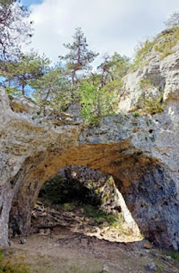 Discover the Arcs de Saint-Pierre near Saint-Pierre-des-Tripiers: a stunning natural stone archway carved by time in the Causse Méjean.