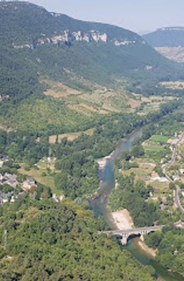 Take a train to Millau, the nearest station. From Millau, catch local Bus 100 towards Le Rozier. Check the bus schedule in advance as services may not run frequently. From the bus stop in Le Rozier, it's approximately a 20-minute walk to Rocher de Capluc. Follow signs towards the Tarn river and the rock formation.