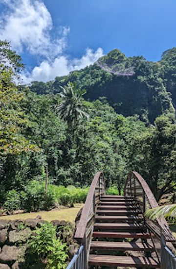 From Papeete, take the local bus (Le Truck) towards the east coast. You will want to get on the bus labeled 'Faa'a' or 'Hitiaa O Te Ra'. The bus ride will take approximately 30-45 minutes. Make sure to tell the driver you are going to Fa'aruma'i Waterfalls so they can assist you with directions. Get off the bus at the designated stop near the entrance to the waterfalls, which is marked by a sign. After disembarking, follow the marked trail towards the waterfalls. The hike will take around 30 minutes through beautiful lush greenery.
