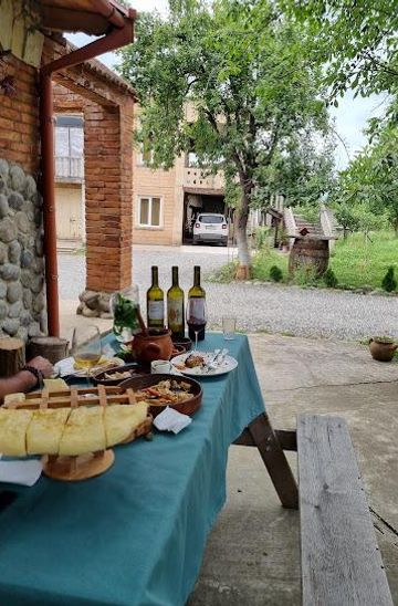 No visit is complete without a feast in the family dining room, where Mama Abuladze serves Imeretian specialties: khachapuri, vibrant pkhali salads, succulent shashlik, tender chicken, and fresh salads. Meals are communal, fostering connections amid walls adorned with awards. The food, made with garden-fresh ingredients, perfectly complements the wines, creating memorable supras filled with toasts and stories. Vegetarian options abound, reflecting the winery's welcoming ethos.Family Hospitality and Accommodations