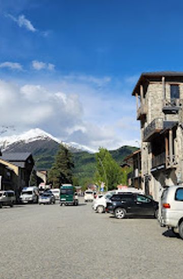 From Mestia, head southeast on the main road (E60) towards the village of Vichnashi. Follow the signs as you pass through the picturesque landscapes of Svaneti. The drive should take around 30 minutes, covering a distance of approximately 20 km. Be prepared for winding roads and beautiful views. Once you reach Vichnashi, look for parking spaces near the restaurant located at 2PVG+P7.