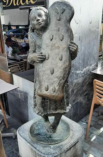 Aachen's iconic Printen Girl statue: a sweet tribute to the city's famous gingerbread and a must-see landmark on Büchel street.