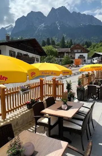 Savor authentic Bavarian flavors amidst stunning alpine scenery at Jägerstüberl in Grainau.