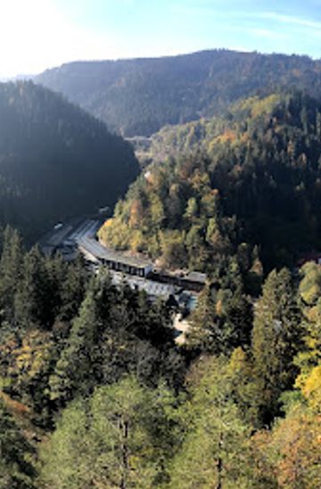 Witness the Schwarzwaldbahn's engineering marvel at Vierbahnenblick, a panoramic viewpoint offering four unique train perspectives in the Black Forest.