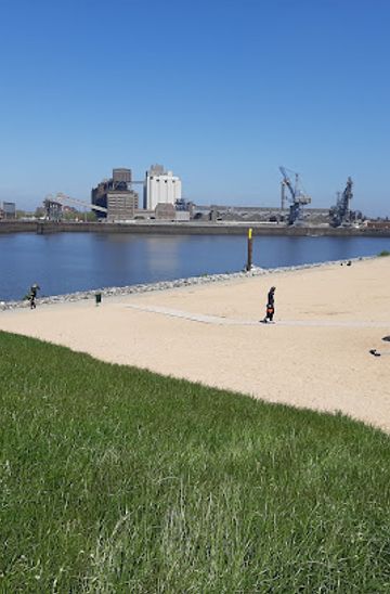 Discover Bremen's Waller Sand: A unique urban beach blending recreation, industrial history, and innovative flood protection along the Weser River in the Überseestadt district.