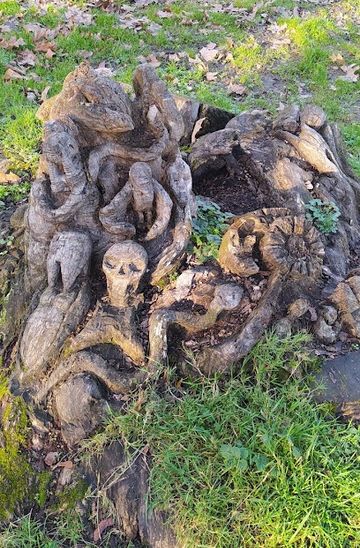 Discover whimsical wood carvings in Cologne's Lindenthal district at Baumschnitzerei 1, where art and nature intertwine to create a unique and enchanting experience near the University of Cologne.