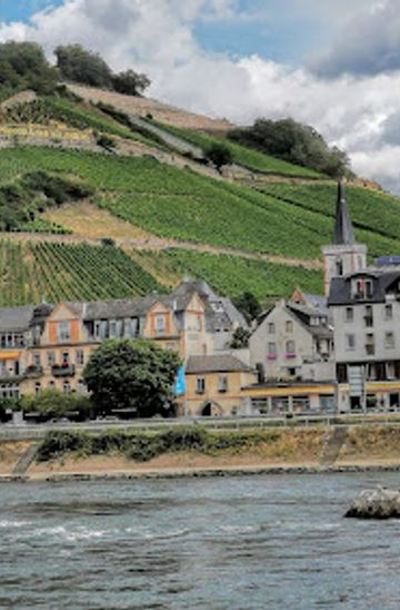 From the Assmannshausen train station or ferry dock, follow the signs towards the town center and Höllenbergstraße. The walk is approximately 15-20 minutes, gradually uphill. Orientation is easy as the vineyards are visible from most points in the village. Be aware that Höllenbergstraße is a steep climb in some sections.