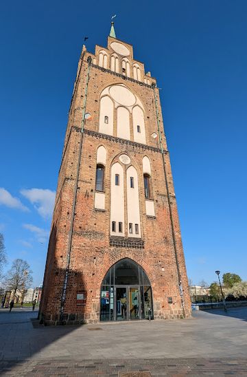 From the Rostock Main Station (Hauptbahnhof), take tram line 1 towards 'Rostock-Warnemünde'. Get off at the 'Kaiserstraße' stop. From there, walk straight along 'Kaiserstraße' for about 300 meters. Turn right onto 'Kröpeliner Str.' and walk approximately 600 meters. Kröpeliner Tor will be on your left at Kröpeliner Str. 49A.
