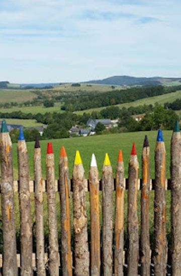 Visit Riesenbuntstifte, a unique tourist attraction in Eslohe, Sauerland, where vibrant oversized colored pencils create an imaginative environment perfect for families and art enthusiasts alike.