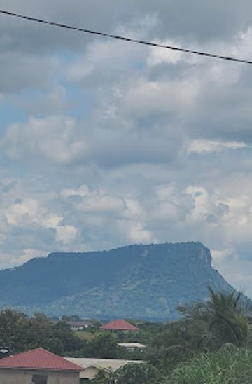 From the center of Ho, head south towards the main road. Start by walking towards the Ho Central Market. Once you reach the market, take a left onto the main road (N1) heading out of the town. Continue straight for about 1 kilometer until you reach the junction at the sign for Adaklu Mountain. There should be a clear sign indicating the direction to Adaklu. From there, follow the footpath or the road that leads into the hills, which will guide you toward the base of Adaklu Mountain.