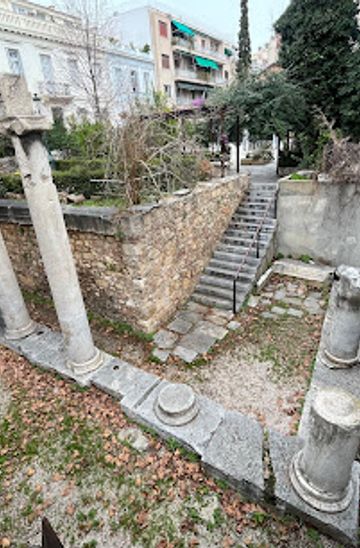 From Syntagma Square, take bus line 040 or 550 to the 'Syntagma Square' stop. Walk towards Amalias Avenue and turn left onto Lisikratous Street. The Roman Stoa is about 300 meters down Lisikratous Street on your right. A single bus fare costs €1.20 and is valid for 90 minutes. Tickets can be purchased at kiosks or automated dispensers in metro stations.