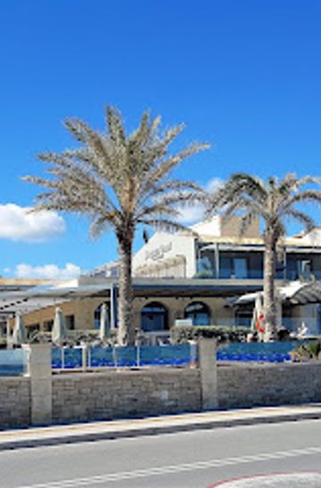 If you are in the heart of Rethymno, make your way towards the beach by heading south. Follow the main road, Arkadiou Street, which will take you towards the waterfront. Continue straight until you reach the coast, where you will see the beautiful promenade. From there, turn right (west) along the promenade, and you will find yourself at Προκυμαία Ρεθύμνου, located at Ari Velouchioti, Rethymno 741 33. This walk should take approximately 15-20 minutes depending on your starting point.