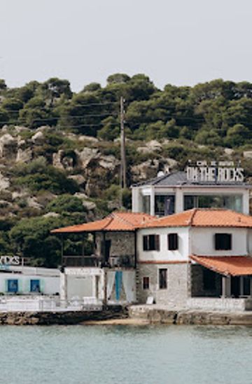 Experience the vibrant nightlife at On The Rocks—a beachfront bar in Ormos Panagias offering stunning views, refreshing cocktails, and a lively atmosphere.