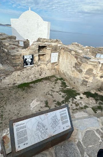 From Mykonos Old Port, head north along the waterfront. Follow the coastal path, passing by the Archaeological Museum. Continue through the charming streets of Mykonos Town towards the Kastro neighborhood, where you'll find the castle entrance and Panagia Paraportiani church. The walk is approximately 5-10 minutes and is free of charge.