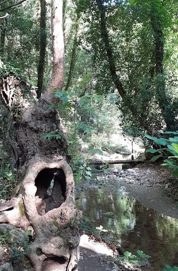 From Potami Beach, follow the well-marked walking path along the stream. The path is shaded by trees and includes wooden bridges and stepping stones. The walk to the first waterfall takes approximately 20 minutes. Be prepared to wade through water to reach the waterfalls.