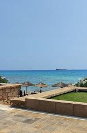 Navarone Bay, located near Lindos, Greece, is a breathtaking beach destination perfect for tourists seeking relaxation and stunning natural scenery. With its crystal-clear waters and serene atmosphere, it's an ideal spot for sunbathing, swimming, and exploring the nearby coastal beauty.