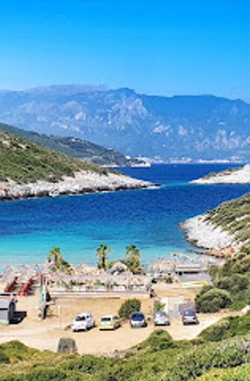 Livadaki Beach is a small, exotic sandy beach on the northeastern coast of Samos, Greece, known for its turquoise, crystal-clear, and shallow waters. Sheltered in a cove, it offers a tranquil escape with a vibrant beach bar and opportunities for relaxation and water activities.