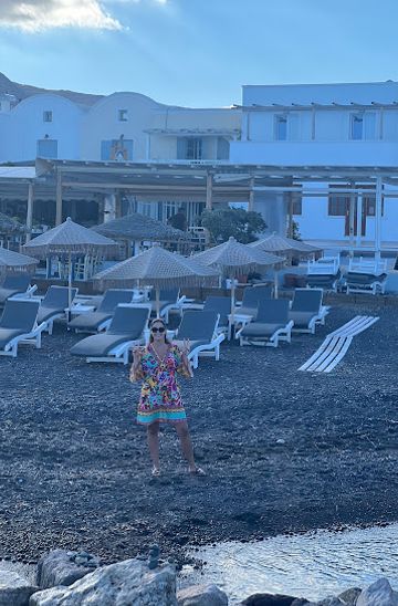 Experience the breathtaking beauty of Kamari Beach in Santorini, where crystal-clear waters meet vibrant nightlife and delicious local cuisine.