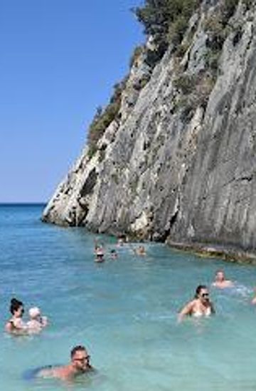 Xigia Sulfur Beach, located on the northeastern coast of Zakynthos, is renowned for its therapeutic sulfur springs that seep into the sea from caves in the surrounding cliffs. The milky waters offer potential relief from skin and joint ailments, making it a unique destination for relaxation and rejuvenation.