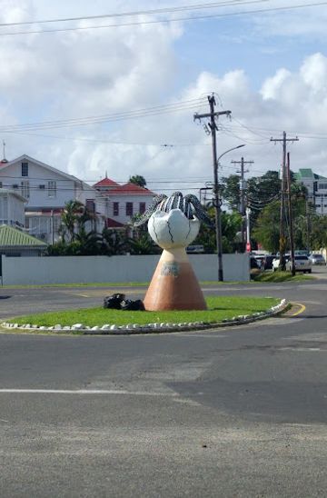 After reaching Georgetown, you can take a taxi or a local bus to get to the Guyana Marine Turtle Monument. If you prefer a taxi, you can find them at the Stelling or nearby. Show the driver the address: RRFQ+P5G, Seawall Public Rd, Georgetown. If taking a bus, look for one heading towards the Seawall area. Once you reach the Seawall, the monument is located along the public road, and you may need to walk a short distance to find it.