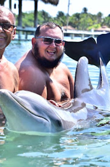 Experience the thrill of swimming with dolphins at Encuentro Delfines in Sandy Bay, Bay Islands - an unforgettable adventure awaits!
