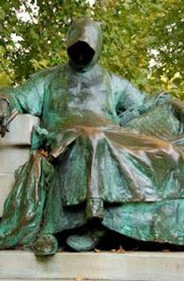 Explore the mysterious Statue of Anonymous in Budapest's City Park, a tribute to Hungary's unknown historian amidst lush greenery.