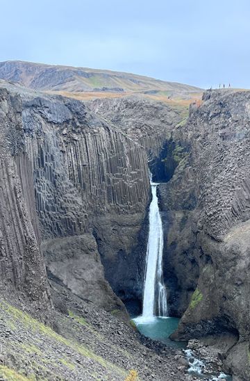 From Hengifoss Waterfall, head back towards the main road (Upphéraðsvegur). Drive approximately 3 kilometers along the road until you reach the parking area for Litlanesfoss, which will be marked. Look for signs indicating the waterfall trails.